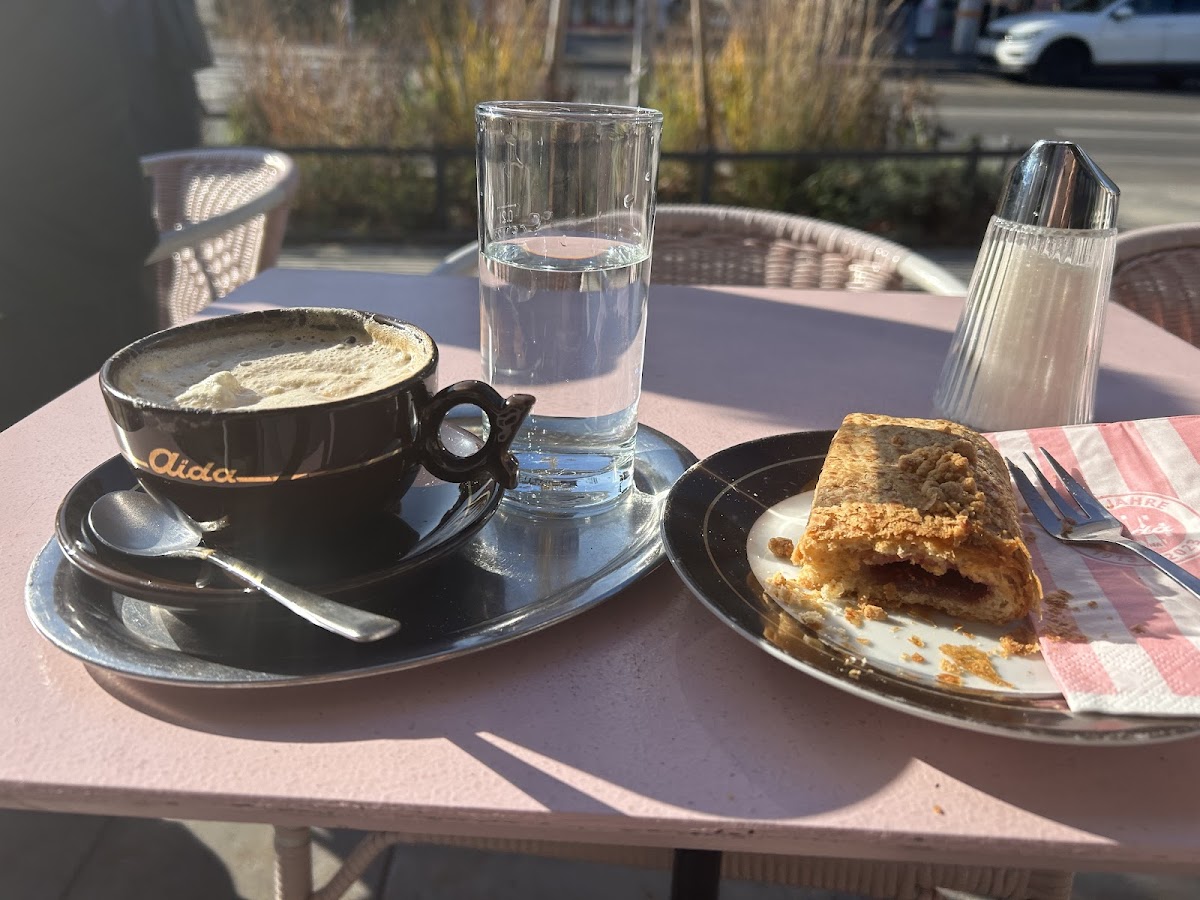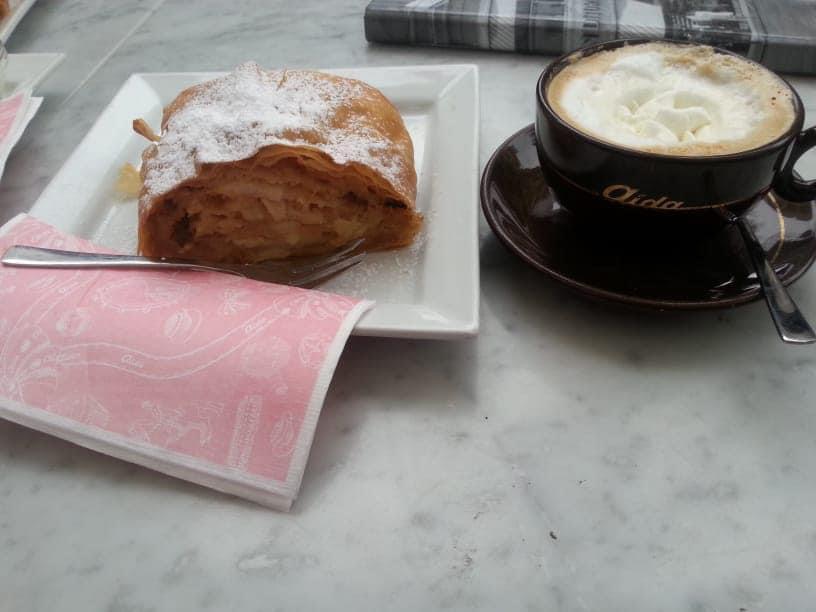 "The Aida café in downtown Vienna serves delicious Viennese coffee and apple pie."
